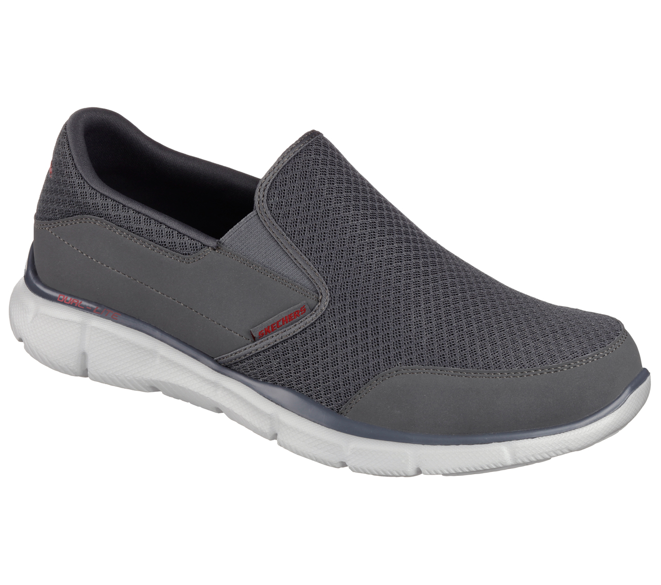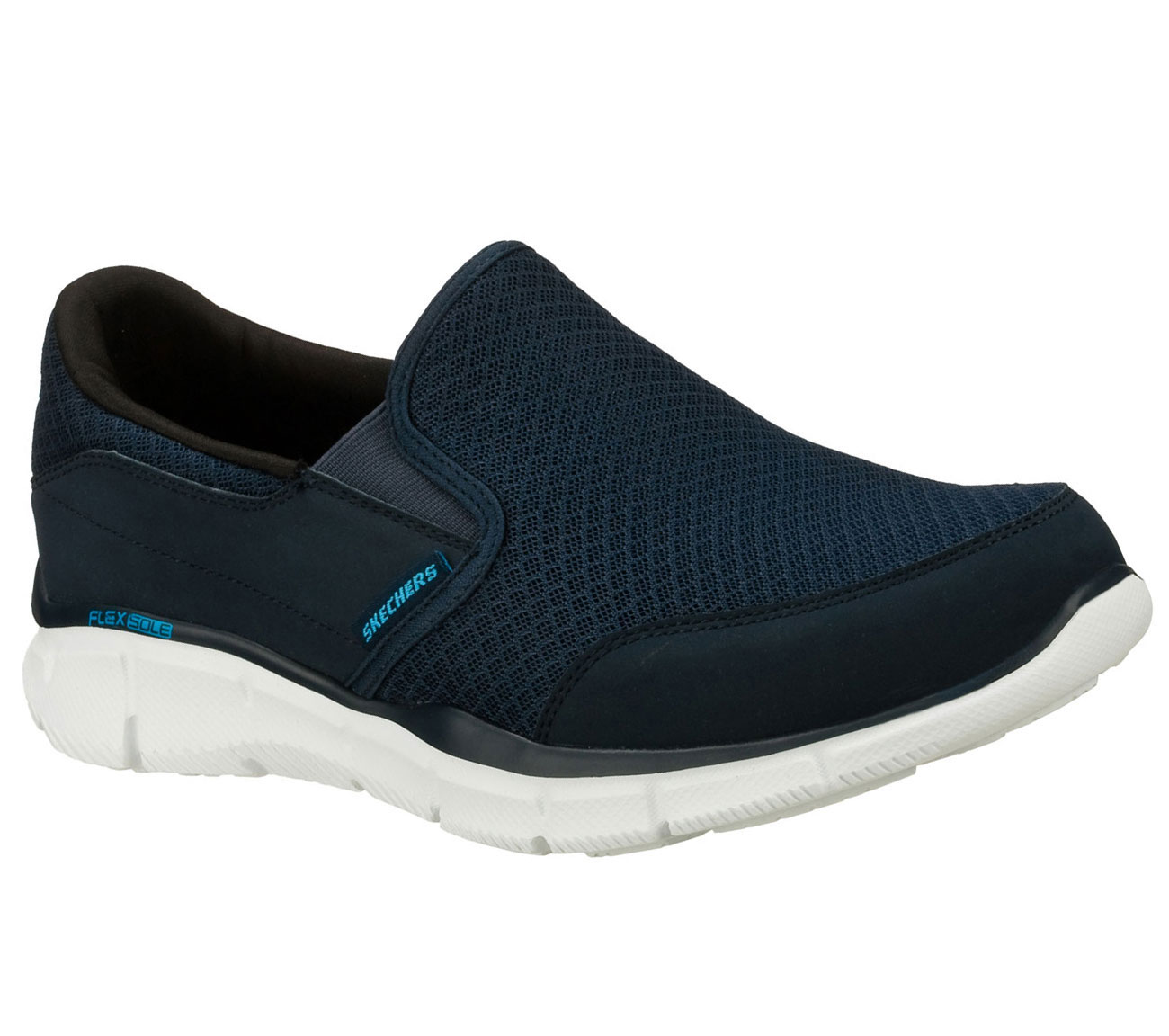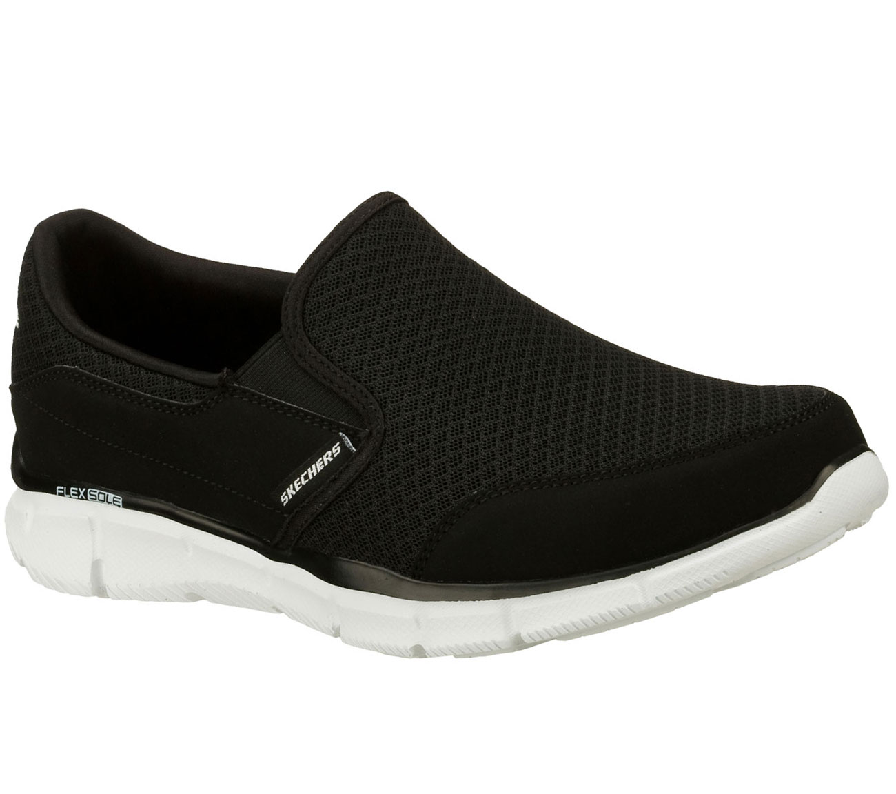 Get amazing comfort and sporty style even easier with the SKECHERS Equalizer - Persistent shoe. Smooth faux leather and mesh fabric upper in a slip on sporty comfort moc with stitching and overlay accents. Memory Foam insole.