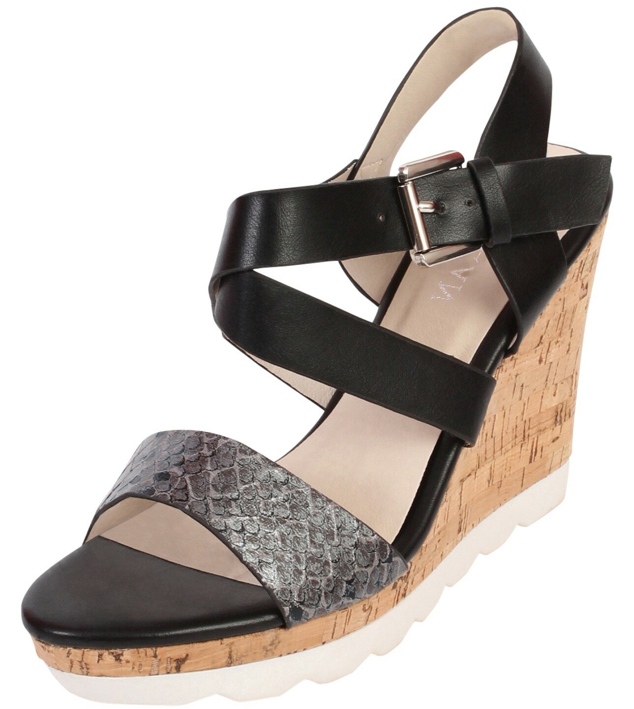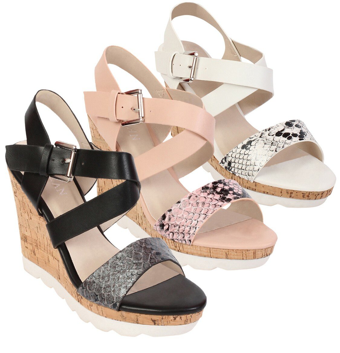 Womens Ladies Cork Summer Wedge Strappy Shoes Slingback Peep Toe Wedge Sandals